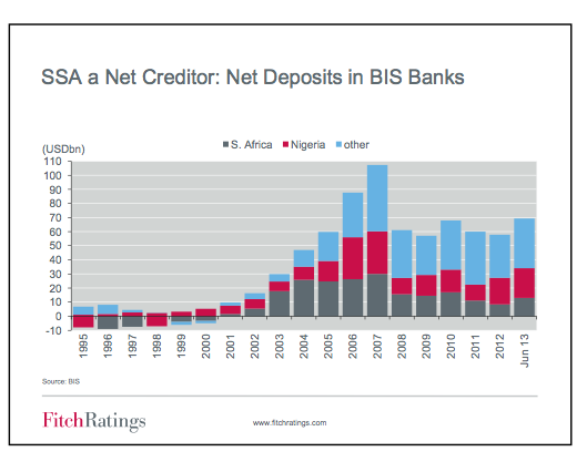 “There was a big fall back after 2008 when countries across the board, particularly in South Africa and Nigeria, used their coffers overseas to act as a buffer during the financial crisis,” says Fox. “But bank lending to these countries is increasing in gross terms. It is being matched by flows from the countries into deposits in other jurisdictions.