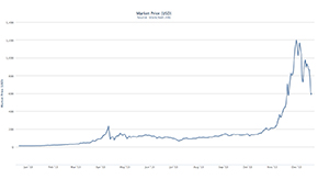 The route to that number, if it ever gets there, will certainly be volatile, just as the pre-IPO value of Facebook and Twitter was volatile, ebbing and flowing according to the speed at which they grew and the legal hurdles they faced. But prices in the tens of dollars seen as recently as this autumn are unlikely to be seen again, says Genko. “Until Bitcoin has a more established place in the real economy it will continue to be volatile, but there are a lot of people on the sidelines with an interest in this market now, waiting for an entry point,” he says. “It is hard to see Bitcoin falling below $200 with the level of interest now out there.”