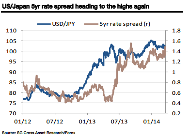 While the range holds, there is unlikely to be any notable follow-through of dollar strength across the board, but in the near-term, says Juckes, the two G10 currencies the dollar is likely to be strong against are the Canadian dollar (undermined by dovish Bank of Canada comments again this week, sensitive to US rates, and overvalued), and the yen (which should weaken as US rates edge up, particularly if the global risk environment remains broadly positive).