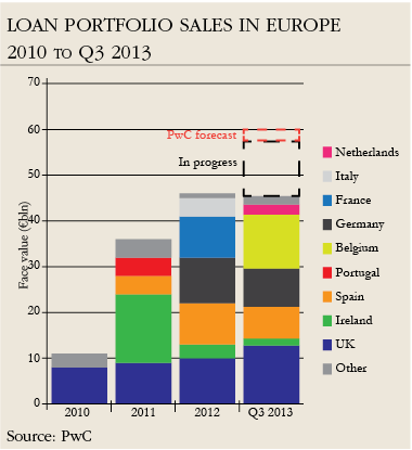 “The focus is now around the periphery – Italy, Spain and Greece,” says Duncan Priston, head of European corporate distressed and special situations at Bayside Capital. “The AQR and provisioning now becoming more appropriate means that banks are offering to sell assets at more attractive levels. These jurisdictions are, however, more problematic than the UK and Ireland where the path to value is much clearer.” PwC estimates that banks across Europe are still holding loan assets of €2.4 trillion that they regard as non-core. In January 2013, Morgan Stanley estimated that European banks had sold or refinanced 20% to 25% of the €700 billion NPLs they needed to deal with to meet regulatory capital requirements.