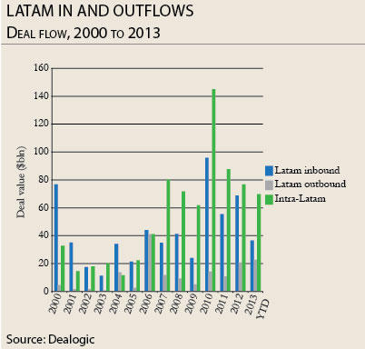 “When speaking with M&A bankers they all say don’t underestimate the power of the multi-Latina,” says West. “There are companies within Brazil, Mexico and Chile, for example, which are becoming more outbound, multinational powerhouses. JBS [a Brazilian meat producer] has been very active and they are already a global leader, and within Latin America you see companies like Falabella from Chile buying 50.1% of Brazilian retailer Dicico [in May 2013 for R$319 million] to give it access to the Brazilian home improvement company. There are a lot of companies trying to make headway within Latin America and we are seeing a lot of that kind of activity.”