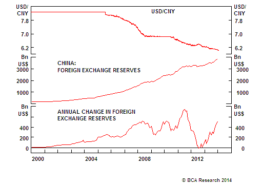 During the past year, China FX reserves have risen by more than $500 billion, which is the fastest increase since mid-2011, according to BCA Research. By moderating the upward move in the global risk-free benchmark, China, in theory, has boosted investors’ desire for EM yield.