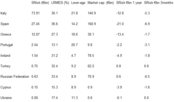 Germany’s SRisk follows with €106 billion, a 31% decrease during past nine months, and €67 billion in Italy, €48 billion in Switzerland and €50 billion in the Netherlands.