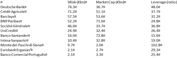 The country’s SRisk has fallen by a relatively modest 14.7% during past year to €74 billion, with UniCredit representing the largest exposure at €25 billion, followed by Intesa Sanpaolo (€13 billion) and Monte dei Paschi di Siena (€9.6 billion).