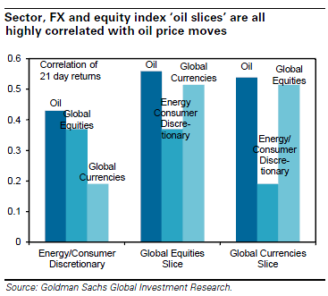 In this context, says Aleksandar Timcenko, global macro strategist for Goldman Sachs, in New York, the equity markets of Russia, South Africa, Canada, Australia and Brazil have outsized positive correlations to oil price risk, whilst at the other end of the spectrum, only Switzerland has outright negative correlations to oil price shocks.