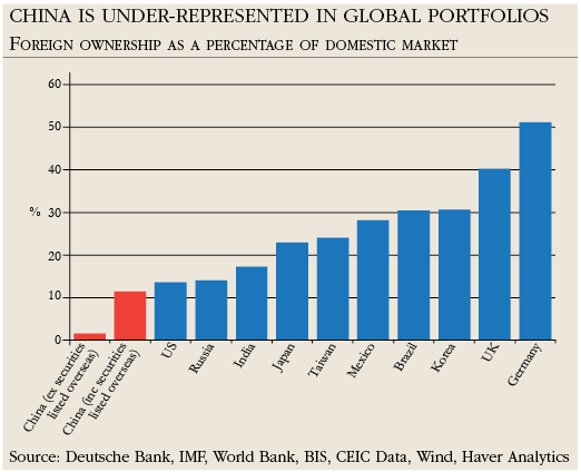 At the beginning of last year the two schemes accounted for just 1.6% of the funds invested in the mainland’s renminbi-denominated A shares.