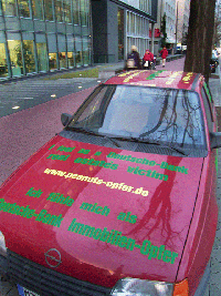Then again, you might not spot it. The owner of the car, Frank Schmall, returned on one occasion to discover it had been hidden between two large Deutsche Bank posters turned inwards.