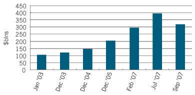 As the dust begins to settle, the obvious question is: what happens now? Is the machinery of the market broken? In late October, securitization was still in a hiatus: in Europe only GMAC RFC has braved the primary market, bar a couple of CLOs, while a trickle of deals has emerged in the US. “The first thing that has to happen is that the market has to hoover up the secondary overhang,” says an investor. “Dealers’ sheets are bloated with inventory from forced sellers – only when this has been shifted can the primary market come back.” The huge bid lists that have been seen in secondary are primarily triple-A (from SIV and ABCP conduit disposals) but there has also been some subordinated paper due to the unwind of the permanent capital mezz funds such as Caliber and Queen’s Walk. “Triple-B mortgage paper is being seen at around 180bp on deals that were done [before the crisis] at about 80bp. That means that the bonds are trading at around 96,” according to one investor.