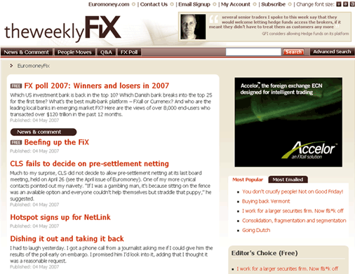 The FX industry’s benchmark poll The only way to access all Euromoney’s FX poll rankings. We received 8,337 votes this year (an increase of 37% on last year) representing a market share of over $124trn US (up 46% on the 2006 sample size of $85trn US).