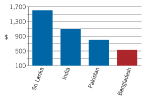 Visiting Bangladesh one is struck by how much and yet how little it has in common with its high-population peers. The world’s truly populous emerging markets – India, China, Brazil and, to an extent, Pakistan, Indonesia and even Vietnam – are engines of global growth, turning their vast numbers of people into an advantage through manufacturing and the emergence of a wealthy middle class. Bangladesh is right up there in population, ranking sixth or seventh in the world, yet its growth rates lag behind the other names on the list, and in particular it doesn’t turn up in emerging market equity portfolios or the hit lists of foreign investors or private equity. Foreign direct investment was just $625 million in 2006, the last available number, a substantial fall on the previous year; it was more than $16 billion in India the same year.