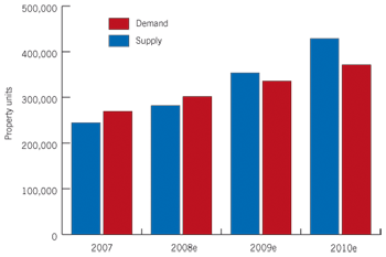 However, Morgan Stanley said in research released in August that it expected a property-price correction in Dubai from the end of 2009, as excess planned supply is combined with the current negative sentiment (see graph).