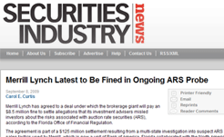If being handed a £2.45 million fine by the FSA was painful for Barclays, it probably felt lucky it was not dealt with by the Florida Office for Financial Regulation, if a report carried by Securities Industry News was anything to go by. “Merrill Lynch latest to be fined in ongoing ARS probe,” screamed one of its headlines, which suggests that punishment in Florida for financial misdemeanours is being taking to the extreme. I just wonder if the regulator will ever get to the bottom of it.
