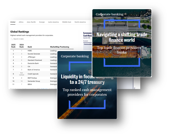 Learn more about the Euromoney Corporate Banking Subscription and unlock all corporate banking data and research, exclusive surveys, annual briefings with Euromoney analysts and dedicated customer service support.